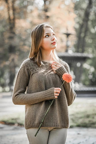 A seamless, top-down pullover featuring a beautifully crafted circular yoke with freeform cable detailing that transitions smoothly into a timeless stockinette body. This versatile design includes instructions for any desired sleeve and body length across a wide size range from toddler to large adult.